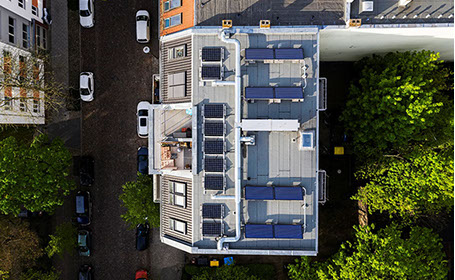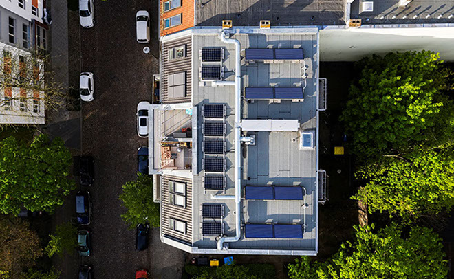 Bei dem Projekt ARCH 90 handelt es sich um die Realisierung eines modernen und energieeffizienten Mietshauses. Dabei wurde bereits zum Planungszeitpunkt die Anforderungen an den Primärenergiebedarf eines KfW 70 Effizienzhauses berücksichtigt. Falls der Ausbau der Erneuerbaren Energien wie geplant erfolgt, wird bereits heute das Ziel der Bundesregierung bis 2050 nahezu klimaneutrale Gebäude zu realisieren, erfüllt.